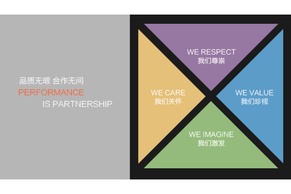 對社會負責,對每一個合作者負責。在設計與制造的每一個環節,我們都進行了質量嚴格監控,完美的質量是我們堅持不懈的最求。我們的價值觀也許并非獨樹一幟,但這些價值觀代表的就是我們。